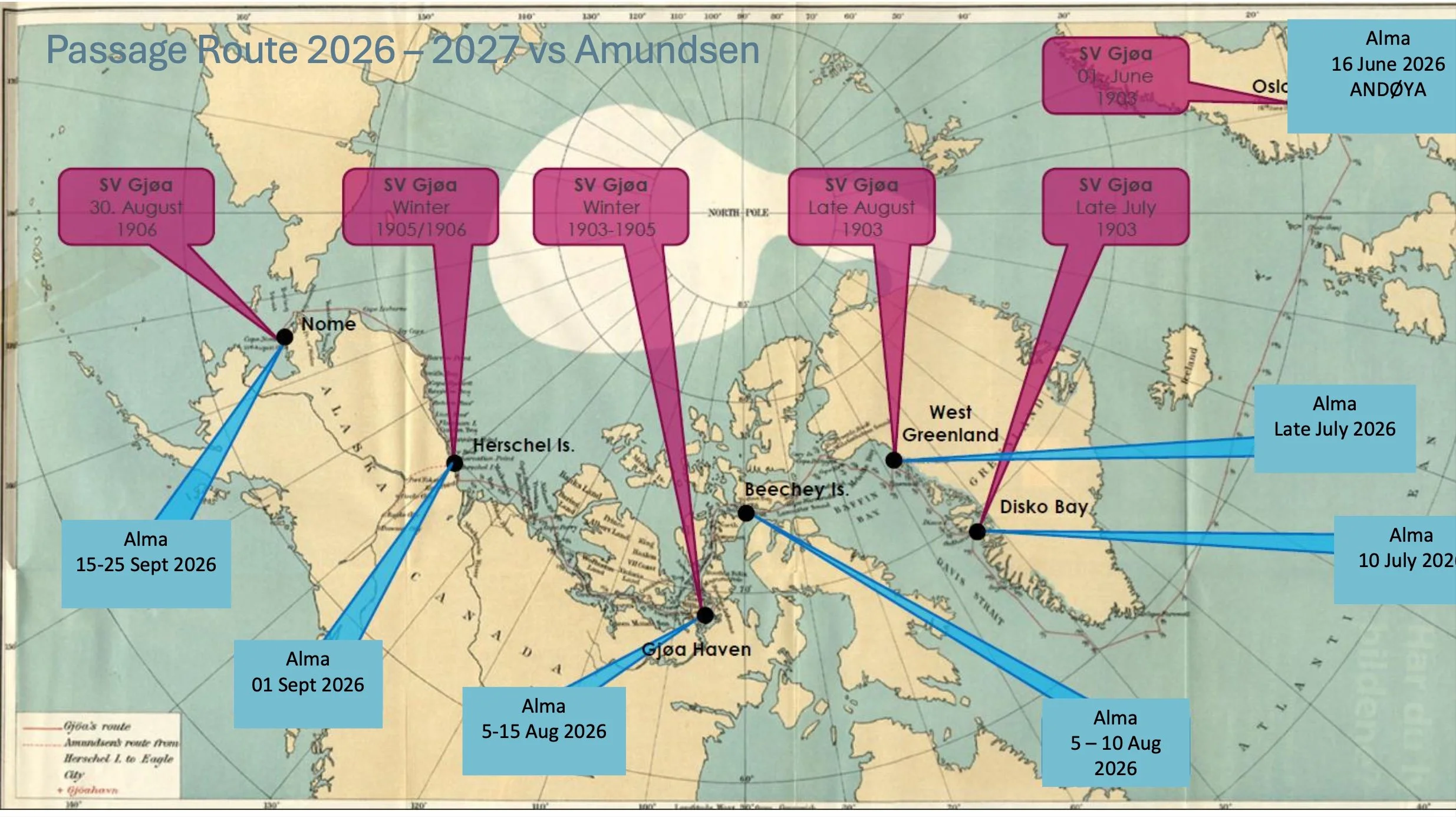 More than 120 years after Roald Amundsen’s historic expedition, a new voyage begins through the legendary Northwest Passage aboard Alma af Frøya.